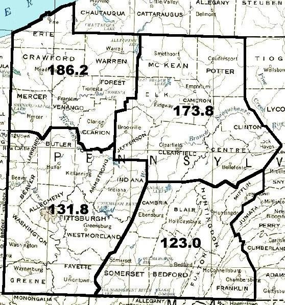 The following is a map of suggested repeater CTCSS tones for various sections of Western Pennsylvania served by the WPRC.